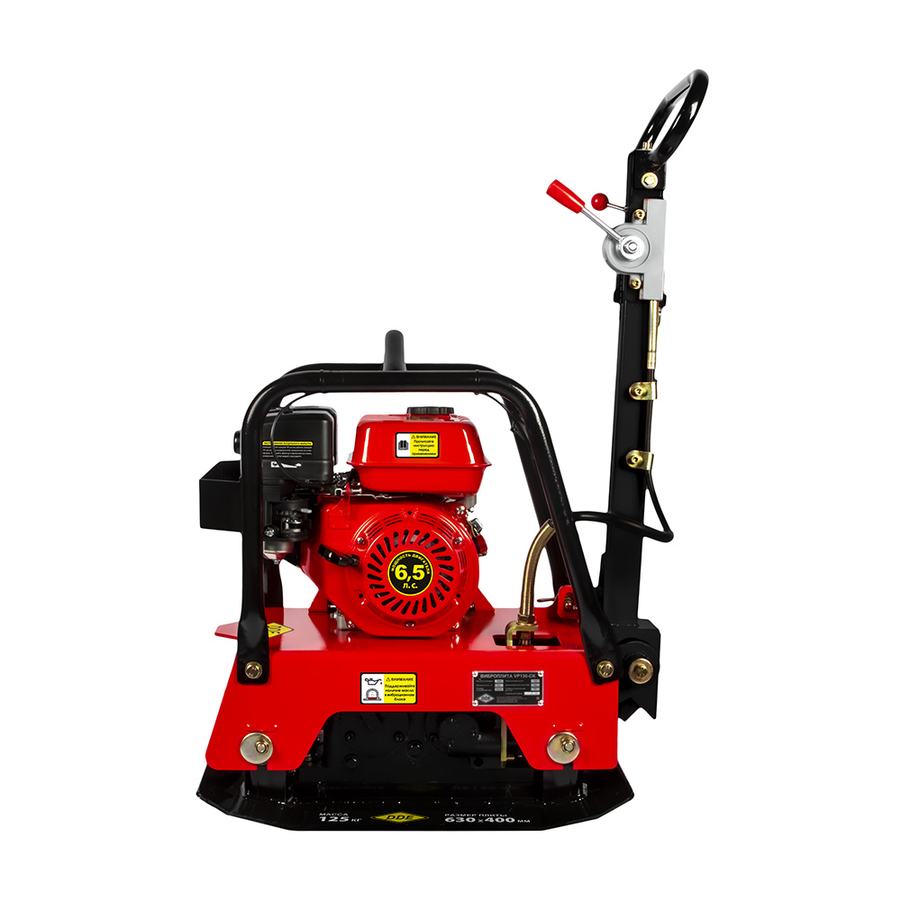 • Виброплита DDE VP 130 СK (6,5 л.с., плита 630×400 мм, до 350 кв. м/час, 125 кг, гл. упл. 50 см, реверс, колеса)