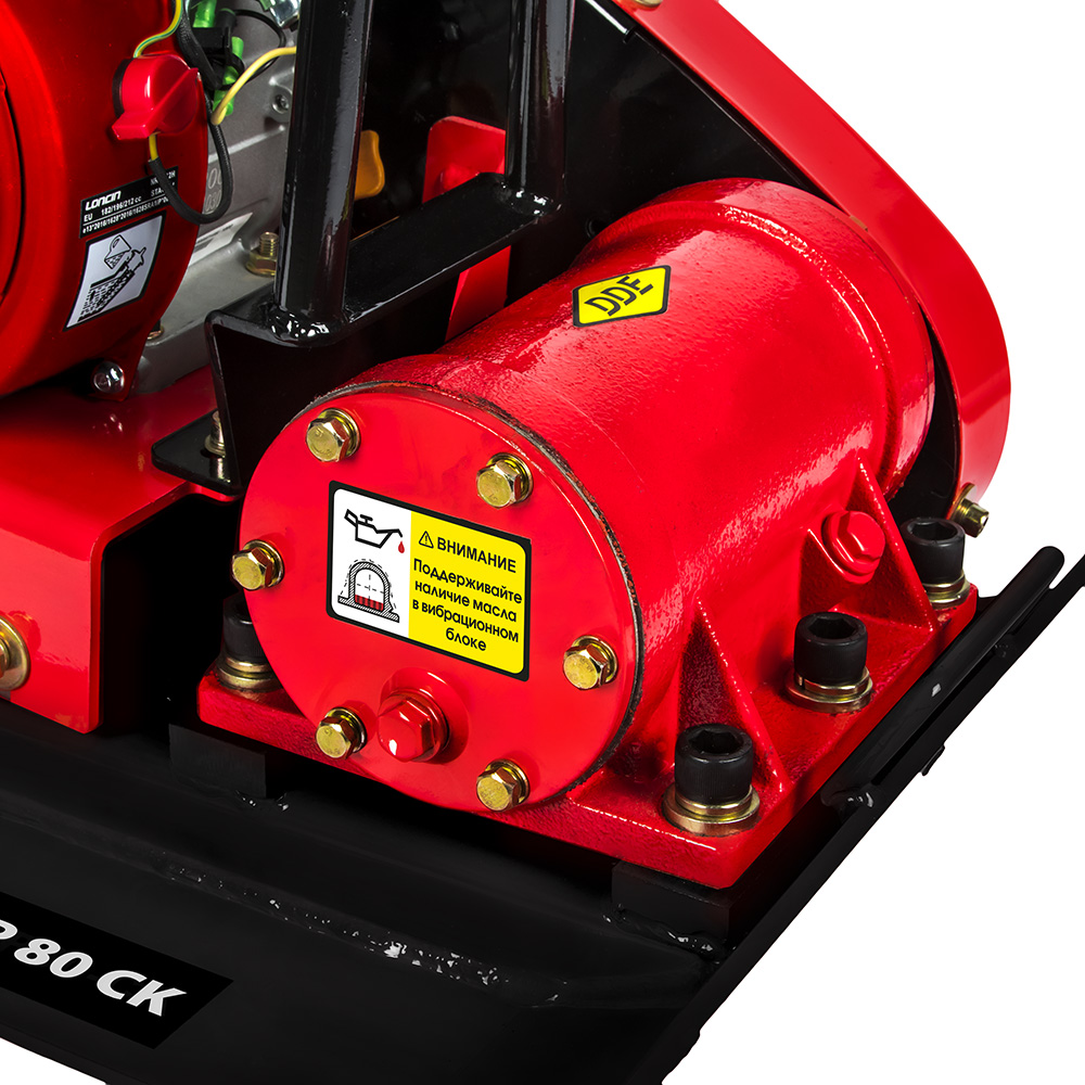• Виброплита DDE VP 80 СK (6,5 л.с., плита 580×420 мм, до 420 кв. м/час, 80 кг, гл. упл. 30 см, колеса)
