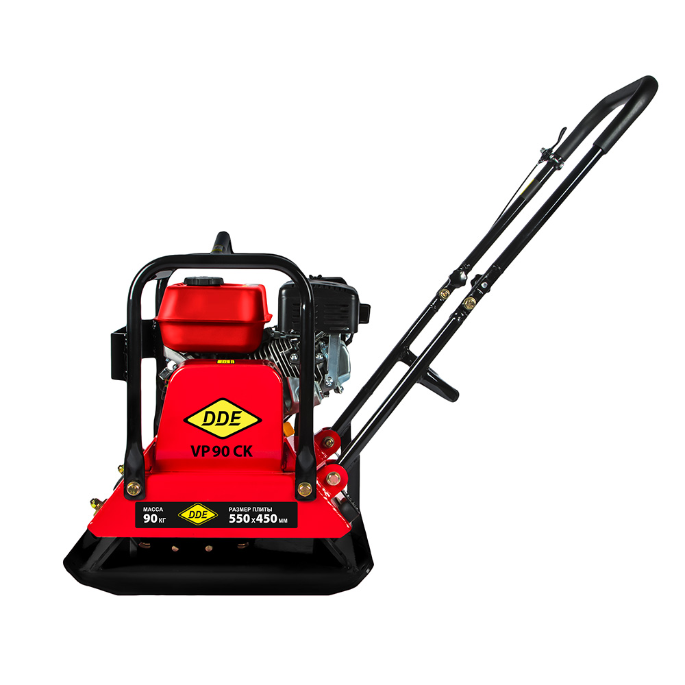 • Виброплита DDE VP 90 CK (6,5 л.с., плита 550×450 мм, до 500 кв. м/час, 90 кг, гл. упл. 30 см, колеса)
