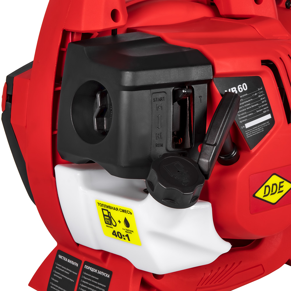 DDE - Воздуходув бензиновый DDE VB 60 (26 см3, 1,1 кВт/ 1,5 л.с., 580 м3/ч, 68 м/с, 4,7 кг) - цена, фото, технические характеристики, деталировка